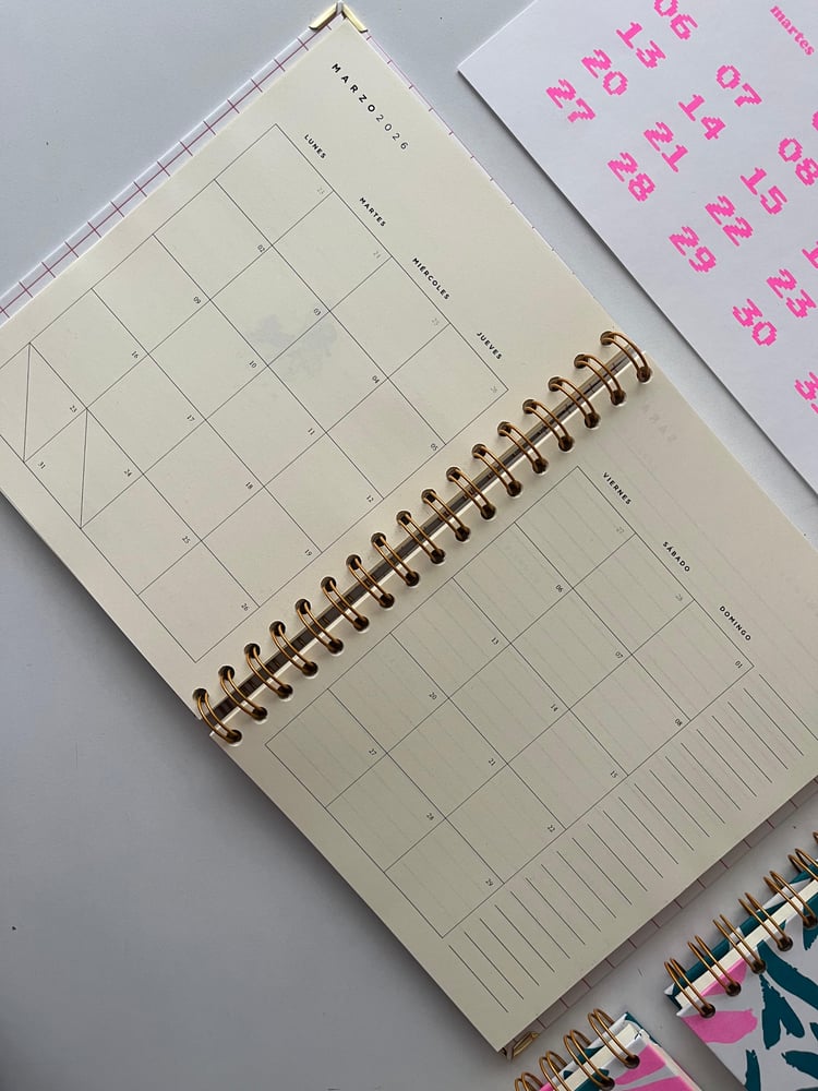 Agenda 2026 Planeacion semanal Mes completo y espacio para notas Papel bond crema 90 gr. Portada e interiores impresión digital